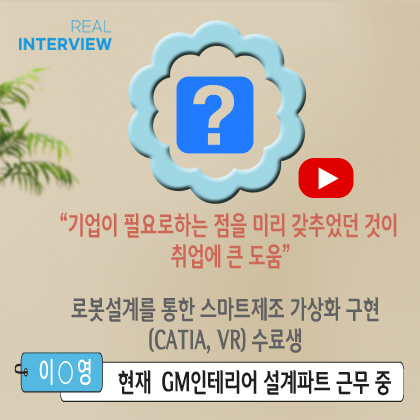 저는 글로벌산업기술교육원에서 6개월간 “기계요소설계(드론제작) 및 CAM 양성(2D CAD, 3D 솔리드웍스)” 과정을 수료했습니다. 현재 “에스디지(주)”의 기어제작팀에서 근무하고 있습니다. 제가 참여한 직업훈련은 기계 및 기계설계에 대해 배울 수 있는 실무과정으로, 기계설계에 대해 구체적으로 배우고자 하는 사람에게 꼭 추천하고 싶은 과정입니다.